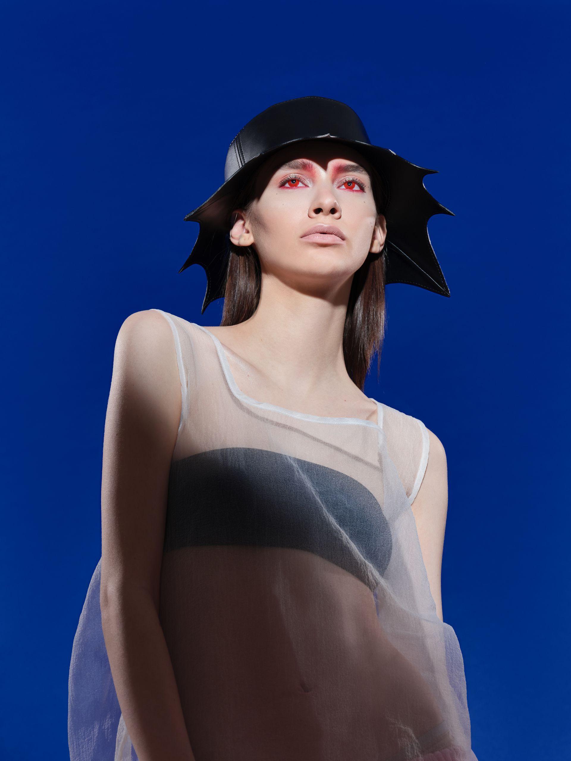 The Spiked Hat serves well for defense, while the Fisherman’s Hat metaphorically conveys the well-known saying "gone fishing" (unavailable, on vacation) and reminds us of the importance of taking a break from the hustle of the world and sources of stress. "I was precisely looking for a leather like Beer skin™ for my collection - the strength and quality of the material allow achieving the desired shapes of hats without the need for linings and additional unnecessary materials. It's truly wonderful to have high-quality plant-based leather available on the market, practically next door, that can support the demands of collection concepts," Ira comments.